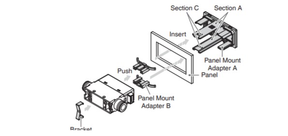 •將面板安裝適配器B(作為附件提供)插入面板安裝的A部分
